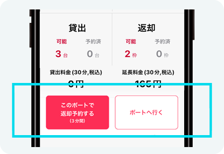 ・ポートが満車の場合は返却ポート予約はできません。