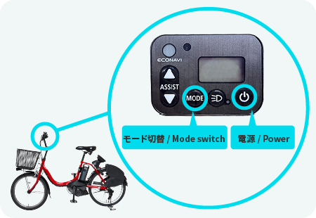 乗車前にアシスト操作パネルの電源を入れ、充電量をご確認ください。