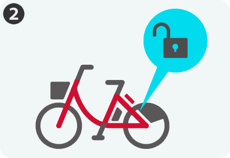自転車の「START」または「開始」ボタンを押し、借りた際と同じ方法で鍵を開けてから、利用を再開してください。